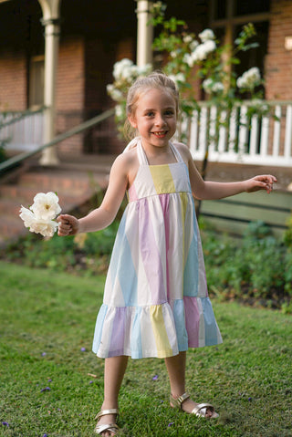 'Rainbow Dreams' - Rainbow Gingham Tie Back Halter Midi Dress